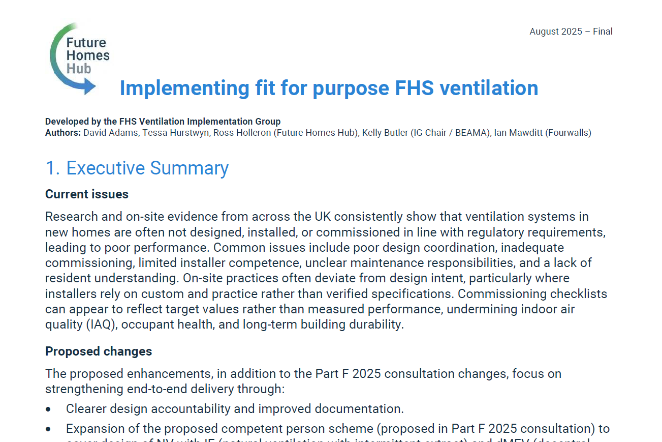 Evidence shows ventilation systems in new homes can fall short of intended performance. This paper makes recommendations for clearer accountability, enhanced competence and proportionate verification — to raise consistency and support healthy homes with minimal additional cost.