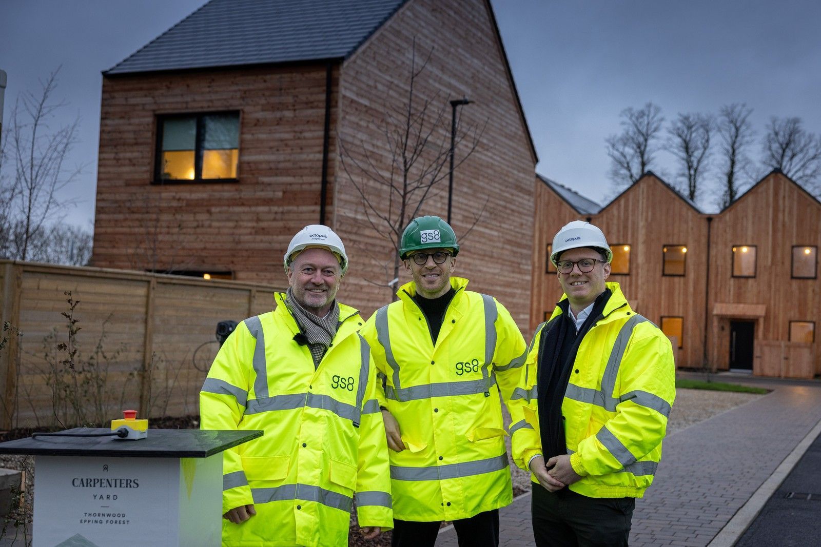 GS8, and Octopus Energy have created the UK’s largest “Zero Bills” community at this 113-home development, Carpenters Yard, in Epping. This is the UK’s first Zero Bills microgrid community, featuring air source heat pumps in every home, in roof solar on each property, and a large, centralised communal battery.